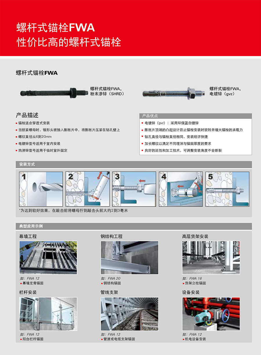 ■鉆孔直徑與錨栓直徑相同,安裝經(jīng)濟(jì)快捷